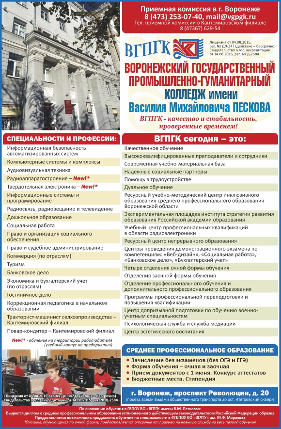 ВОРОНЕЖСКИЙ ГОСУДАРСТВЕННЫЙ ПРОМЫШЛЕННО-ГУМАНИТАРНЫЙ КОЛЛЕДЖ ИМЕНИ В. М. ПЕСКОВА