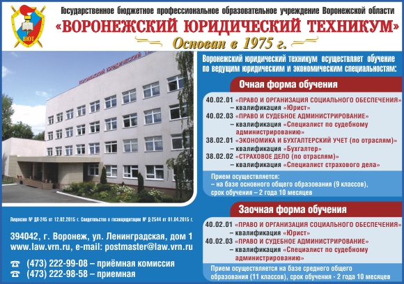ВОРОНЕЖСКИЙ ЮРИДИЧЕСКИЙ ТЕХНИКУМ, ГБПОУ ВО