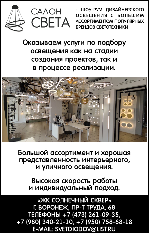 | г. Воронеж, пр-т Труда, 68 («ЖК СОЛНЕЧНЫЙ СКВЕР») | +7 (473) 261-09-35 |