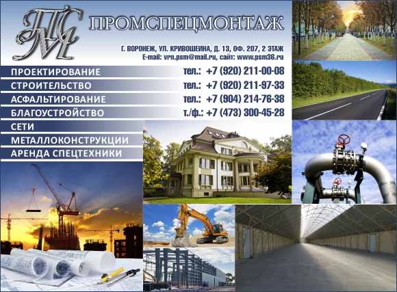 Реклама ПРОМСПЕЦМОНТАЖ из Справочника служебных телефонов Воронежа. Издательство АВЕГА