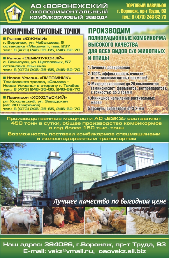 ВОРОНЕЖСКИЙ ЭКСПЕРИМЕНТАЛЬНЫЙ КОМБИКОРМОВЫЙ ЗАВОД, АО ВЭКЗ